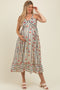 Black Printed Button Detail Tiered Midi Dress
