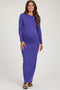 A ribbed maternity midi dress with a squared neckline, sheer puff sleeves, and a side slit.