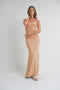 A rib knit maternity midi dress featuring a rounded neckline and a twist at the side of the waist.