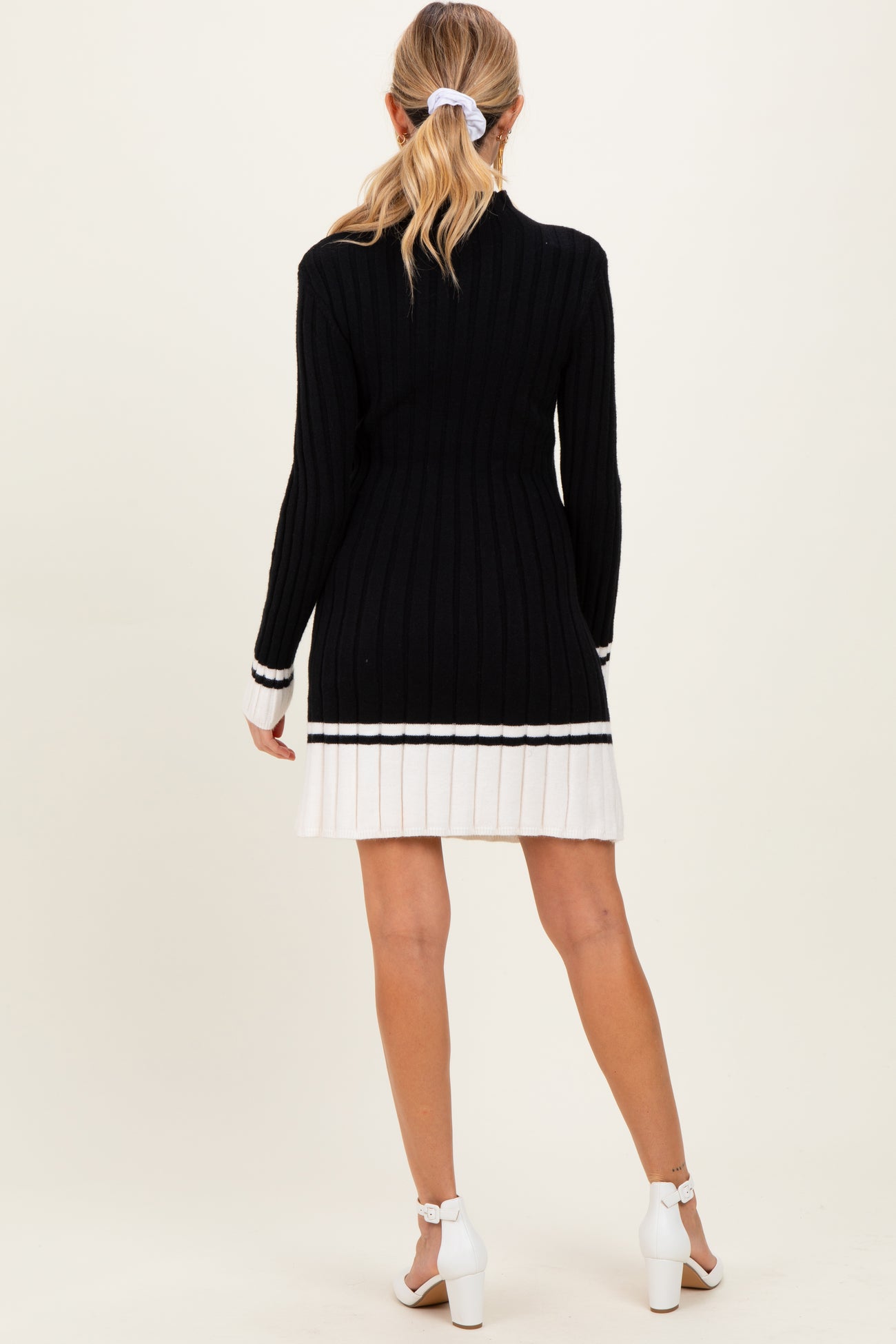 Black Ribbed Contrast Hem Maternity Sweater Dress