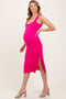 Black Ribbed Knit Low Back Maternity Midi Dress