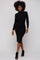 Black Ribbed Mock Neck Side Slit Midi Dress