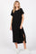 A ribbed midi dress featuring short cuffed sleeves, side slits and a rounded neckline.