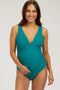 Details A solid hue maternity one piece swimsuit with a scoop neckline, adjustable straps, a back clasp closure, side ruching, and a back cutout. Features full lining and removable padding at the bust. Ruched scallop trim along the neckline and sleeve openings. Content + Care