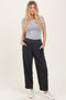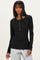 Black Solid Ribbed Long Sleeve Button Down Tunic Top
