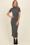 Black Striped Mock Neck Fitted Midi Dress