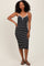 Black Striped V-Neck Sleeveless Midi Dress