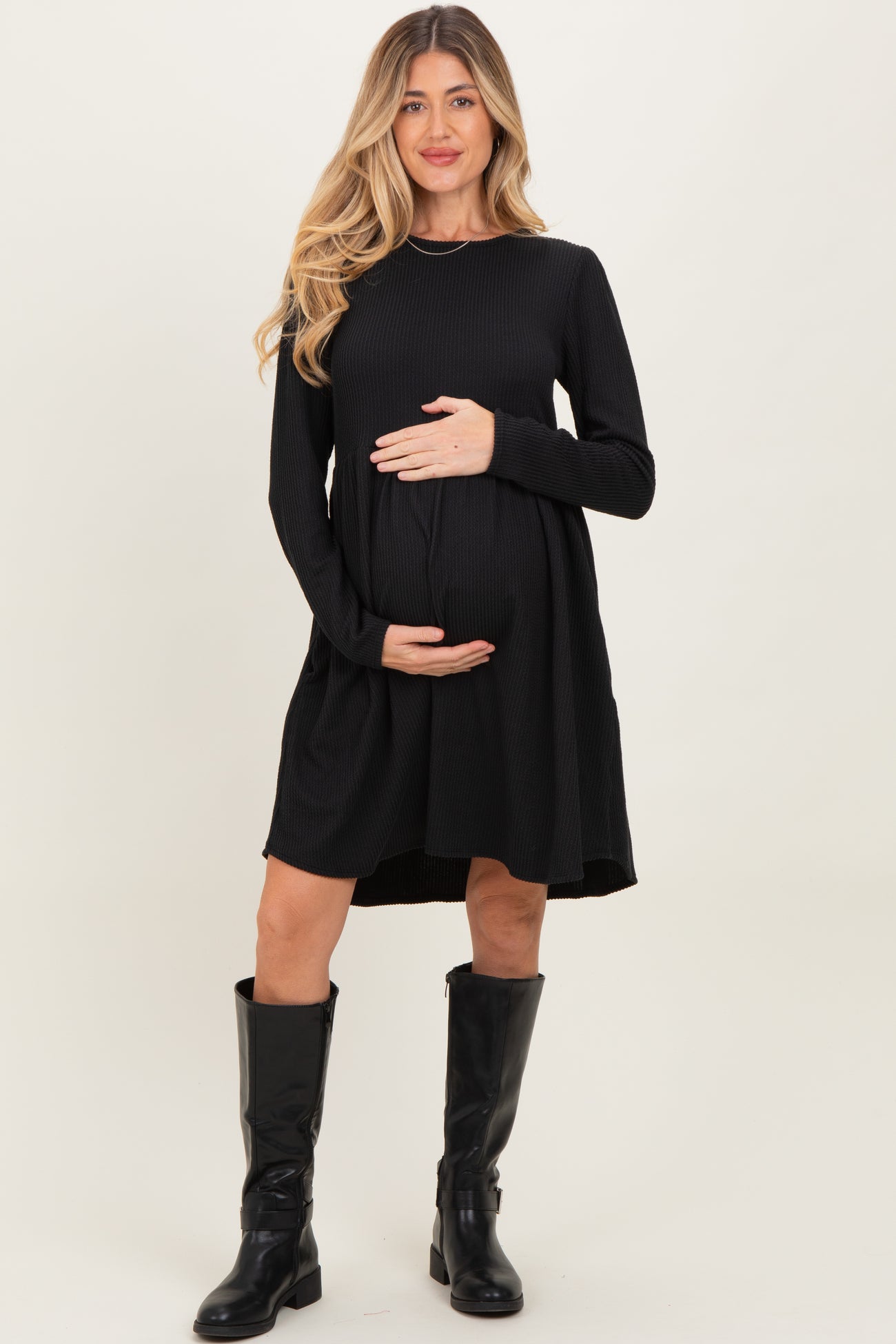 Embrace comfort and style with our Black Textured Rib Long Sleeve Maternity Dress. Crafted from soft, stretchy ribbed fabric, this dress gently hugs your growing bump while providing room to move. Its classic black color and textured design add a chic touch, perfect for any occasion—whether you're dressing up or keeping it casual. The long sleeves offer cozy coverage for cooler days, and the relaxed fit flows beautifully from the empire waist, ensuring ultimate comfort throughout your pregnancy. Pair it with boots or flats for an effortlessly stylish maternity look you’ll love. Available in multiple sizes to support you every step of the way.