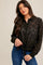 Black Tie Waist Chiffon Jacquard Button Down Blouse