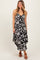 Black Tropical Floral Front Cinch Tie Midi Dress