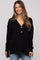 A solid waffle knit maternity hi-low top with a deep v-neckline and button up detail.