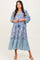 Blue Damask Tassel Front Tie 3/4 Sleeve Midi Dress