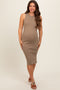 Blue Floral Button Front Drawstring Waist Ruffle Dress