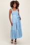 Blue Floral Ruched Tulip Hem Midi Dress