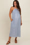 Blue Floral Ruffle Strap Maternity Midi Dress