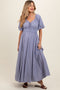 A floral maxi dress with a ruffle accent squared neckline, flutter cap sleeves, a smocked bodice, side pockets, and a tiered skirt. Dress is lined 2/3 of the way down.