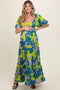 Blue Ombre Pleated Asymmetrical Maxi Dress