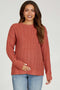 A ribbed maternity top with long sleeves, a rounded neckline, long drop shoulder sleeves, and side slits at the hem.