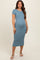 Blue Short Sleeve Rib Knit Maternity Midi Dress