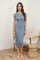 Blue Short Sleeve Rib Knit Midi Dress
