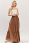 Blue Smocked Waist Button Accent Maxi Skirt