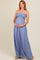 Blue Striped Cutout Halter Wide Leg Maternity Jumpsuit