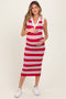 Blue Striped Knit Sleeveless Polo Maternity Midi Dress
