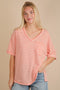 Blue Striped Oversized V-Neck Front Pocket T-Shirt