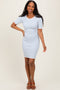 Blue Striped Ribbed Knit Short Sleeve Maternity Mini Dress