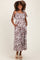 Brown Animal Print Smocked Shoulder Tie Maternity Midi Dress