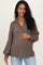 Brown Brushed Colorblock Long Sleeve Collared V-Neck Maternity Top