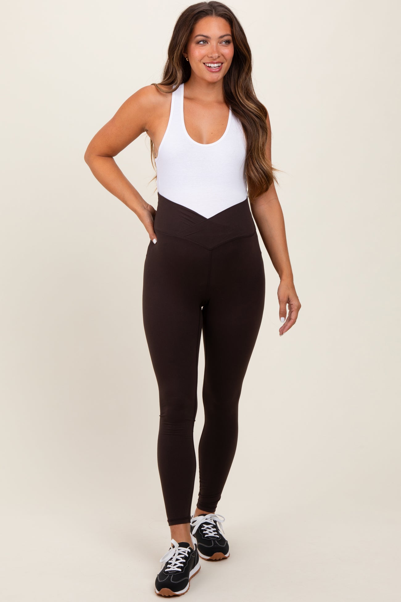Brown Crossover Waistline Maternity Leggings