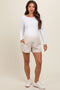Brown Elastic Waist Side Pocket Active Maternity Shorts
