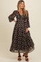 Brown Embroidered Puff Short Sleeve Square Neck Maternity Dress
