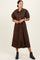 Brown Floral Button Front Waist Tie Midi Dress