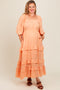 Brown Floral Puff Sleeve Maternity Midi Dress
