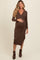 Brown Knit Crossover Ruched Maternity Midi Dress