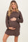 Brown Rib Knit Long Sleeve Maternity Dress