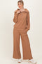 Brown Ribbed Half Zip Pullover Wide Leg Pant Set