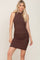 A solid fitted midi dress in a ribbed material with side ruching on both sides.