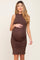 Brown Ribbed Ruched Maternity Fitted Dress
