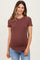 Brown Ribbed Short Sleeve Curved Hem Maternity Top