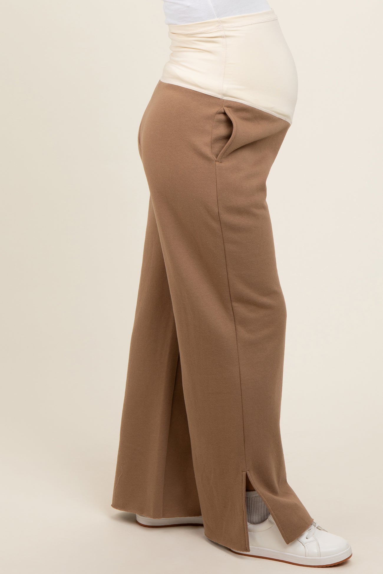 Brown Soft Wide Leg Side Slit Maternity Sweatpants