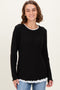 Brown Solid Ribbed Long Sleeve Button Down Collared Top