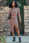 Brown Square Neck Puff Sleeve Dress