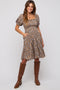 A soft knit maternity tennis romper dress. Features a scoop neckline, a racerback with a cutout, removable cups, an elastic band under the bust, and side pockets on the shorts.