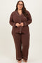 Burgundy Button Down Top Wide Leg Pant Plus Pajama Set