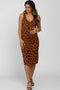 A solid maternity fitted knit dress with a wrap neckline and ruched sides.