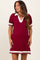 Burgundy Knit Contrast Trim Collared Maternity Mini Dress