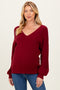 Burgundy Long Sleeve Reverse Stitch Collared Top